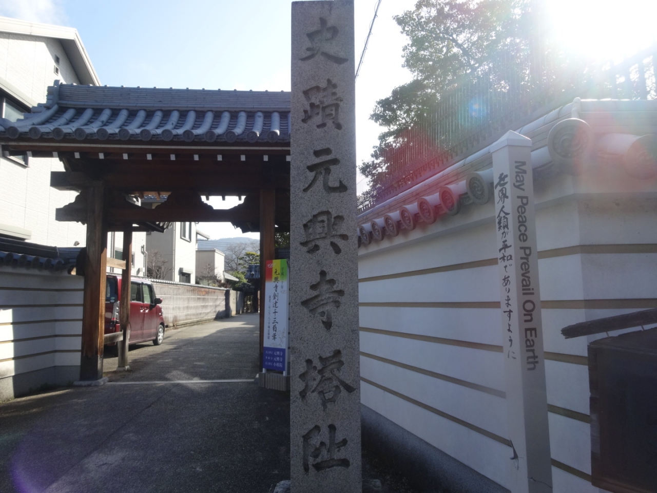 ならまちの世界遺産、元興寺の塔跡ということですが、御霊神社のそばに山門だけが残っていました。こちらから元興寺は近くでしたが、今はかなり小さく感じた元興寺も昔はとても広いお寺だったことを窺い知ることができました。