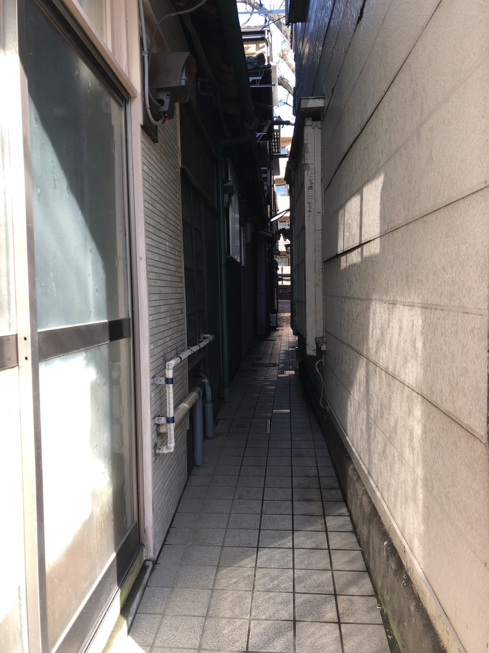 佃島を歩いていると、ふと目についたこのお地蔵さんの看板。きっと多くの人が気づかずに通り過ぎてしまうだろう。幅が1メーターもない路地の奥にこのお地蔵さんがある。おまけに銀杏の大木が民家をつきぬけて立っている。