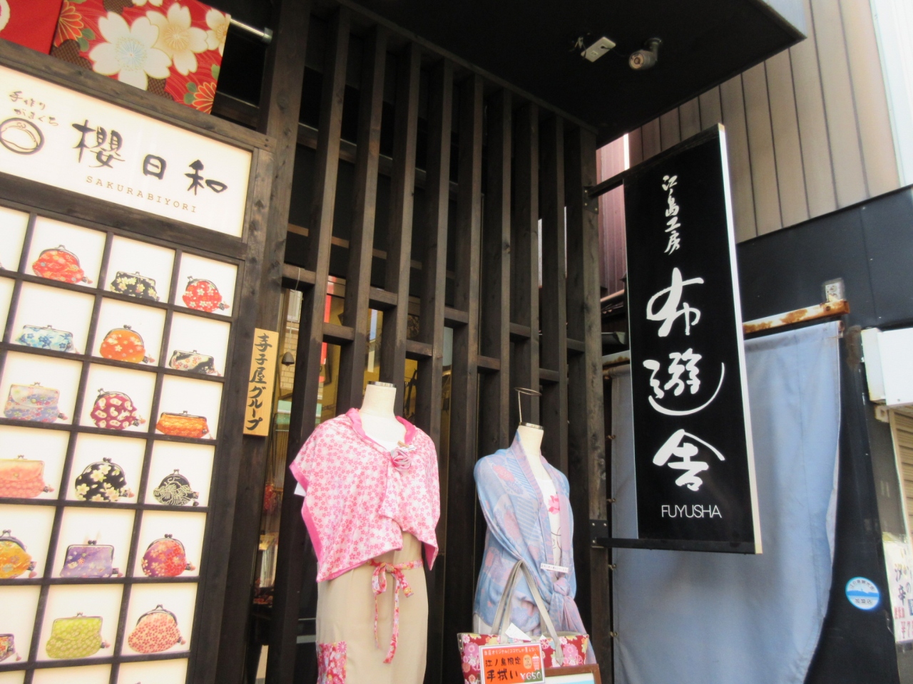 江の島弁財天仲見世通り沿いになります。がま口を中心とした和小物のお店です。どれもかわいらしいですが、あまり手作り感はなく生産品であるのは否定できません。江の島にあるお店というより鎌倉にあるお店のほうがイメージ。