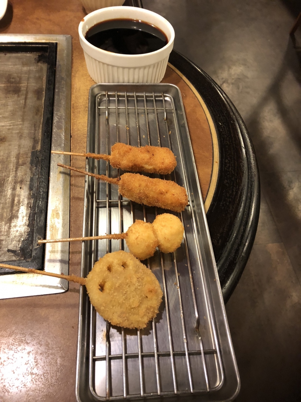 もんじゃと串カツが一度に食べれます