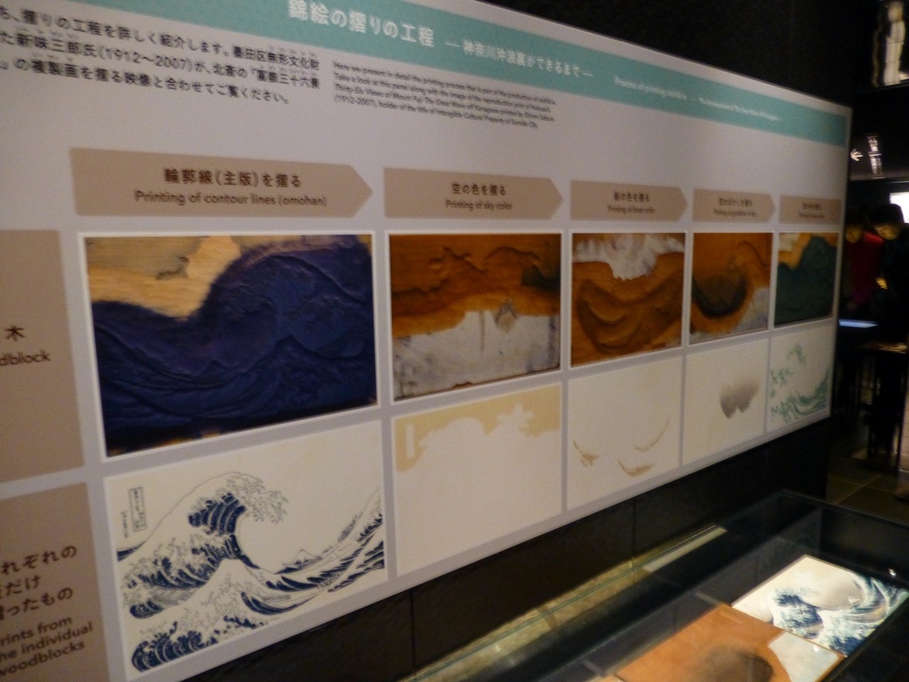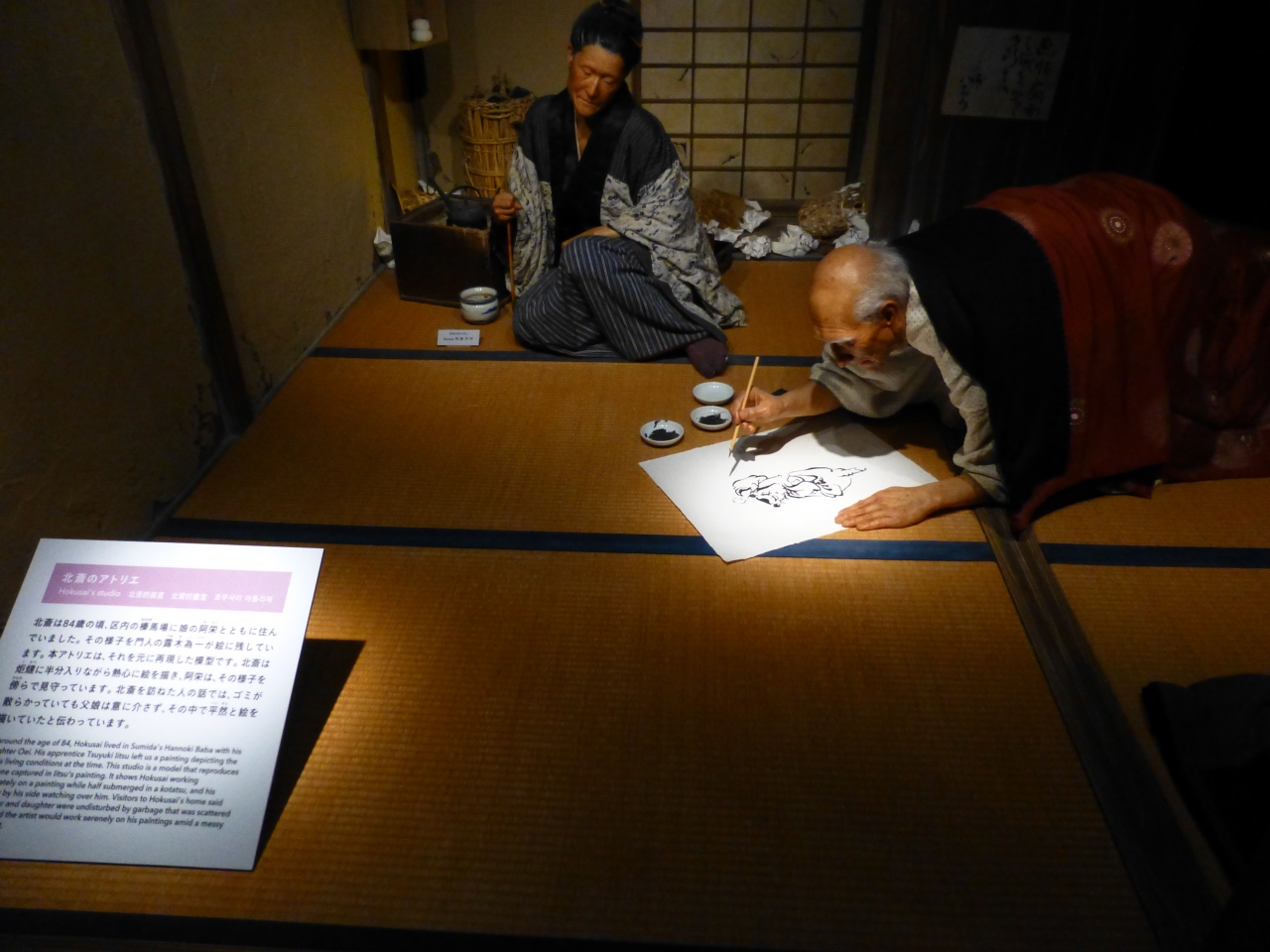 ちょうど、新聞に開館1年で人気があるとの記事が出ていたので行ってみました。両国駅から真っ直ぐに徒歩10分ほどです。公園の一角にある銀色のとても綺麗な建物です。地下1階はロッカーなど、1階は物販店や会議室になっています。2階が企画展示場、3階が常設展示場です。3階の常設展示場では北斎の作品のほかにコンピュータディスプレイを用いて作品集をみたり、作品の作り方を体験したりすることが出来ます。小ぶりな美術館ですが、楽しめました。