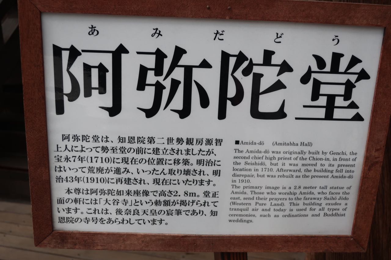 知恩院の御影堂の西側に阿弥陀堂があります。一見古そうな阿弥陀堂ですが、知恩院の中では由一、明治期に建てられた意外と新しいお堂です。訪れたのが正月三が日ということもあり、お堂の中に上がることができました。阿弥陀様はとても優しい顔をしており、阿弥陀堂の中でゆっくり座って長くお参りすることが出来、心休まる時間を過ごすことが出来ました。