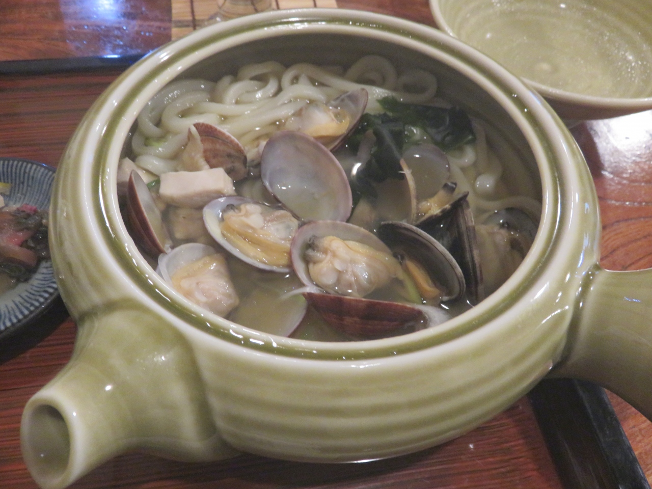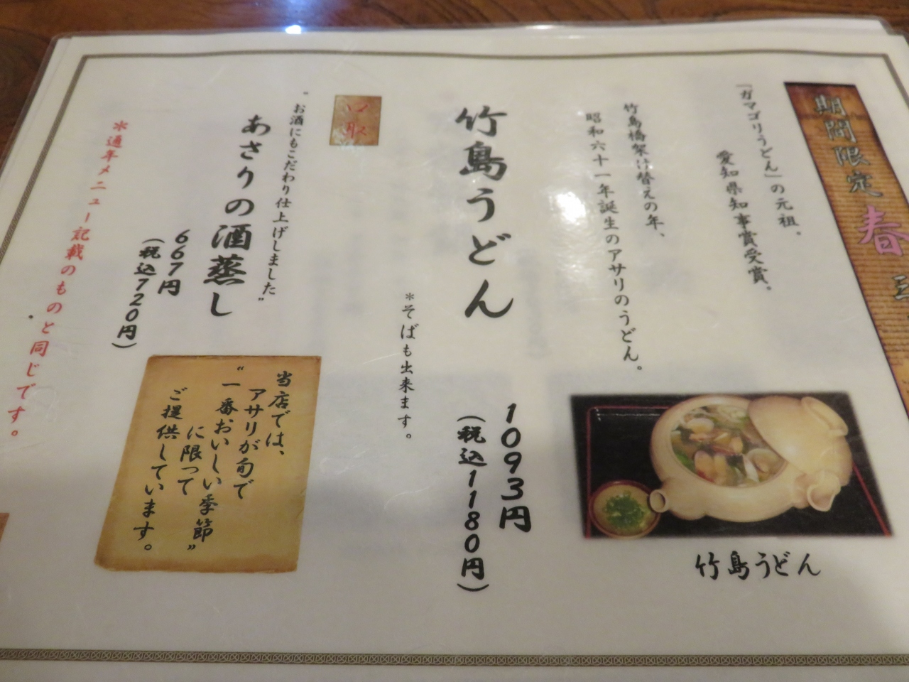 この時期なのでアサリがメインの竹島うどんをいただきました。11時からなのですが、10分過ぎに行ったらもう満員近く。風速9メートルの大荒れでもこんな感じです。