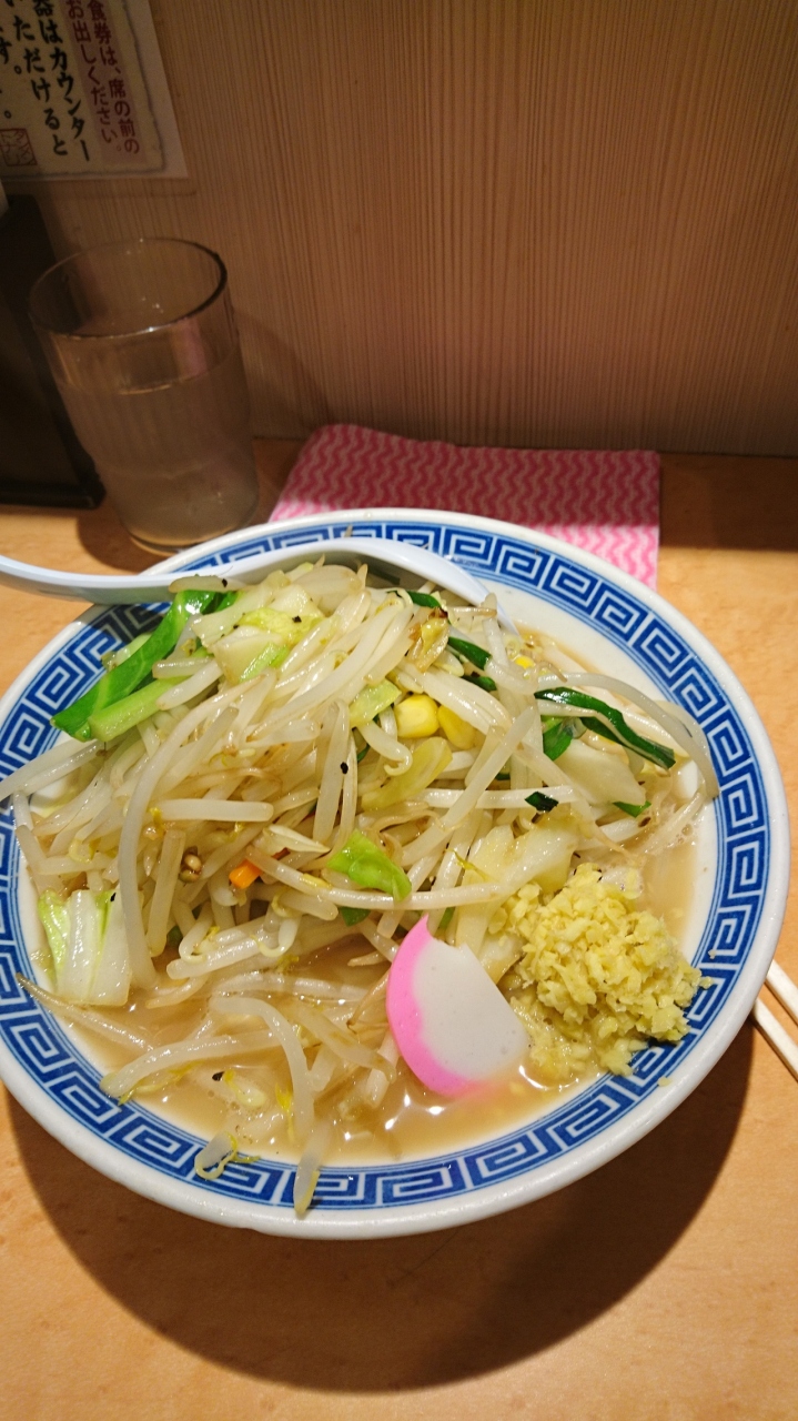 平日の夜に一人で訪問しました。カウンターだけのお店に入り、食券機でタンカラを注文しました。