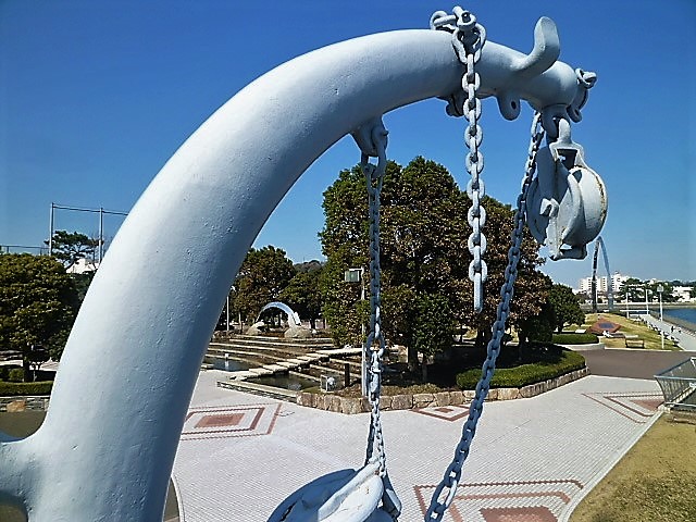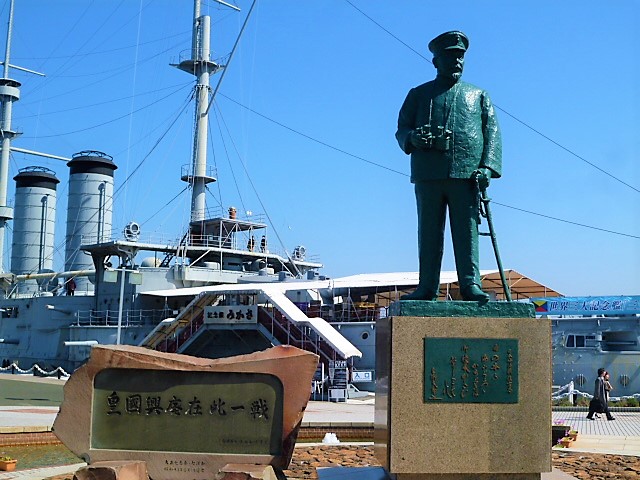 訪れたのは2回目でしたが、猿島/`記念艦 三笠(みかさ)`に立ち寄ってから[三笠公園]に来ました。公園には三笠桟橋(猿島フェリー発着)/東郷平八郎像(あの訓示も)! `みかさ`から見た公園は、小さな入口だったのですが中は広々して東郷像や記念碑が立っていました。さらに、公園ならではの印象的だったのは`みかさ`の船首(ご紋を見上げる)でした。
