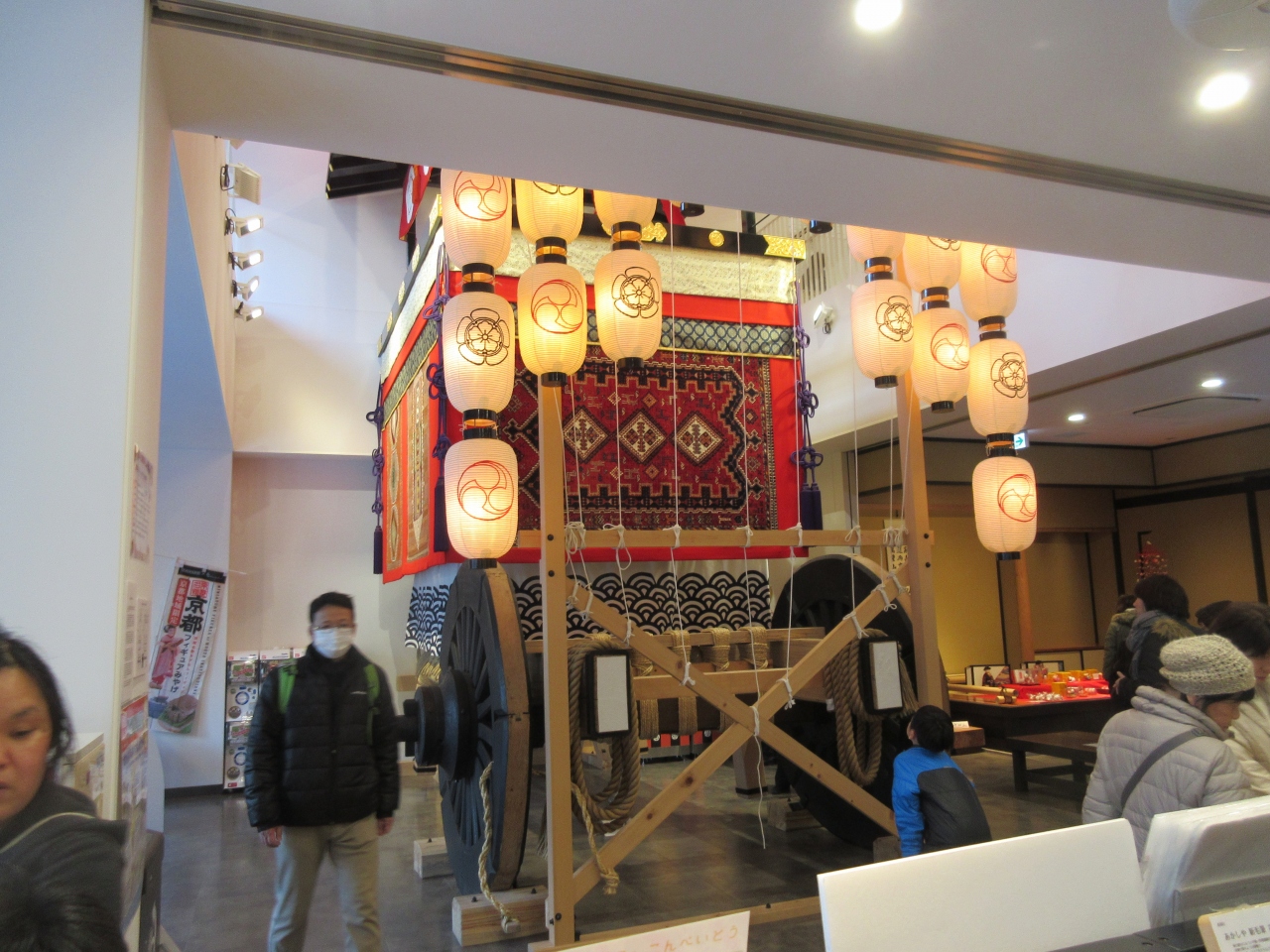 京都の四条通りを八坂神社の方面へ歩いていると、八坂神社の手前にある漢字ミュージアムの1階にある祇園祭のことを知ることのできる施設になっています。新しい施設です、原寸大の鉾が展示されていること。華やかで、とても美しかったです。