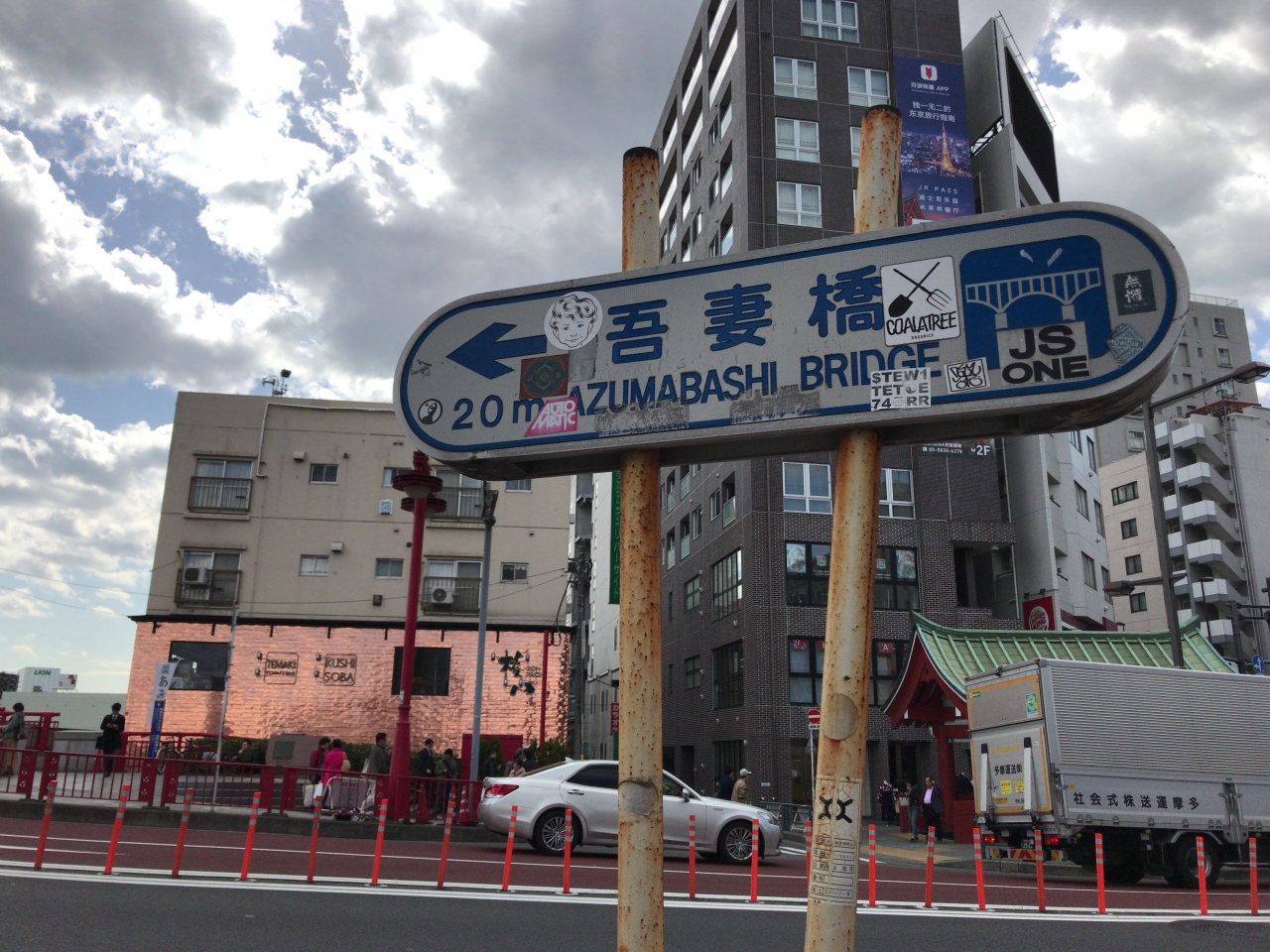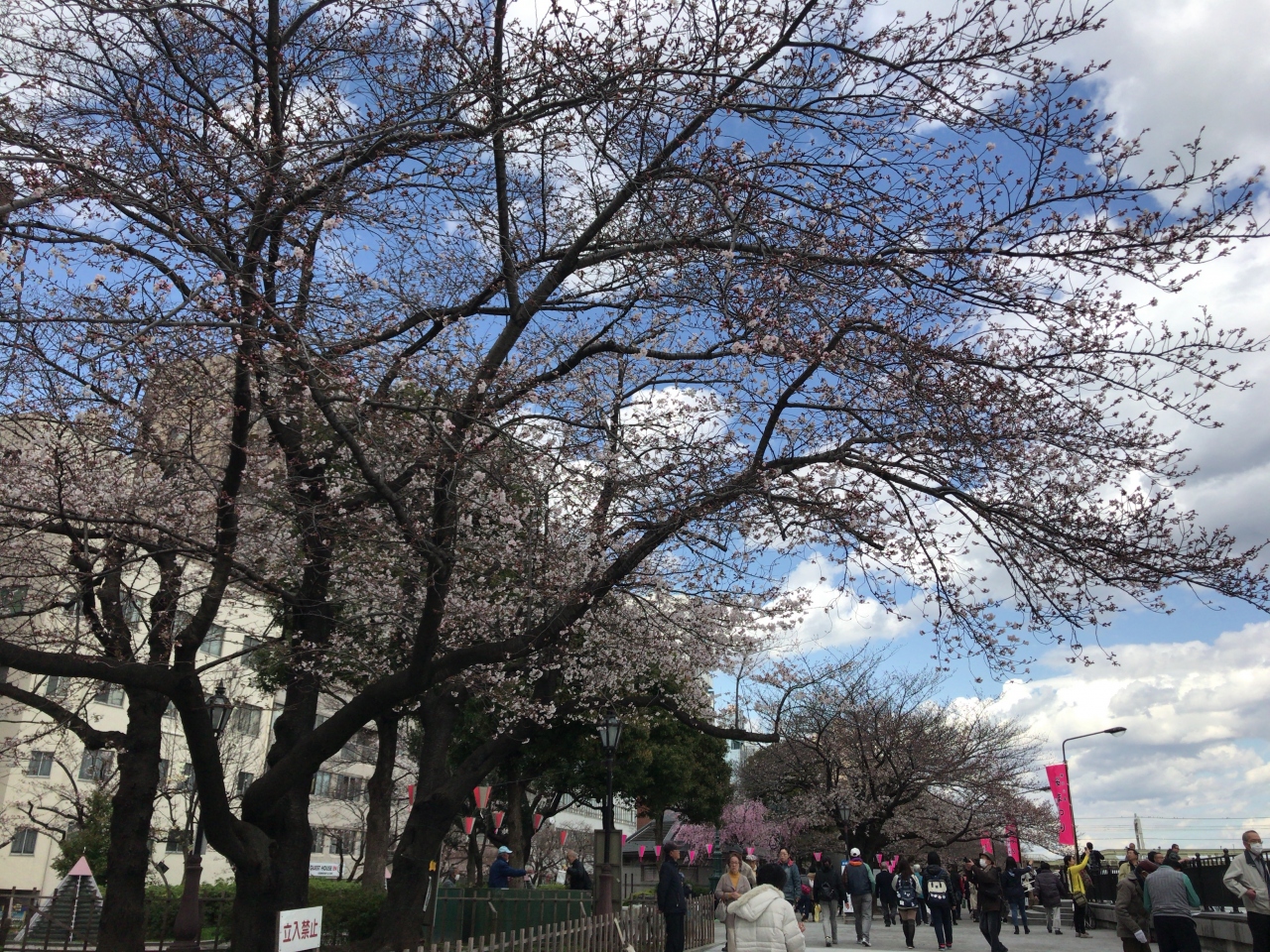 隅田川の一つ上流に架かる言問橋まで歩き渡ってもどる花見コースがオススメだな