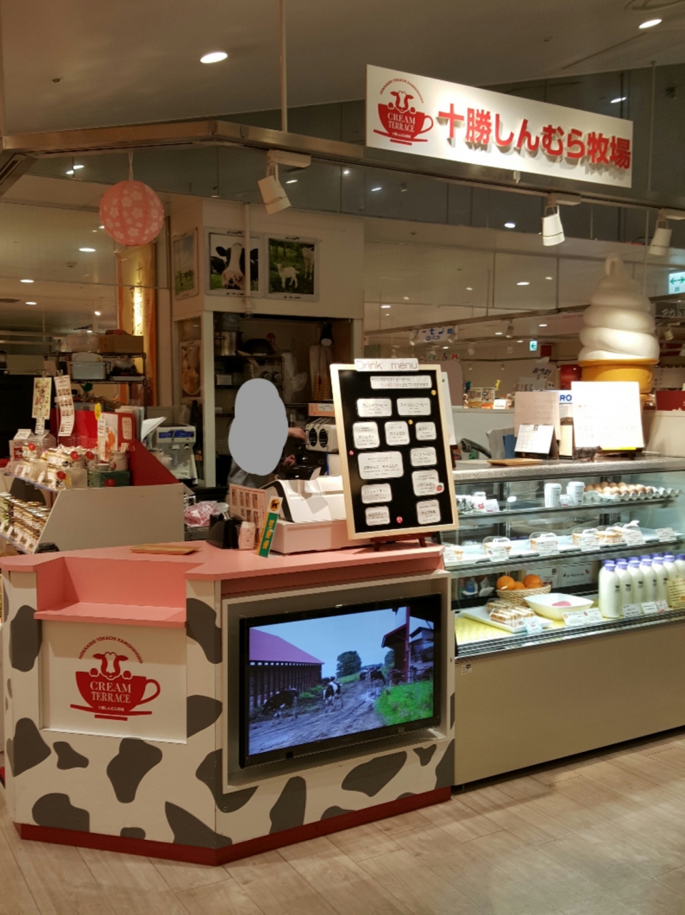 駅なかなので便利ですし、お店の前にはちょっとしたイートインスペースもありソフトクリームなどもあります。