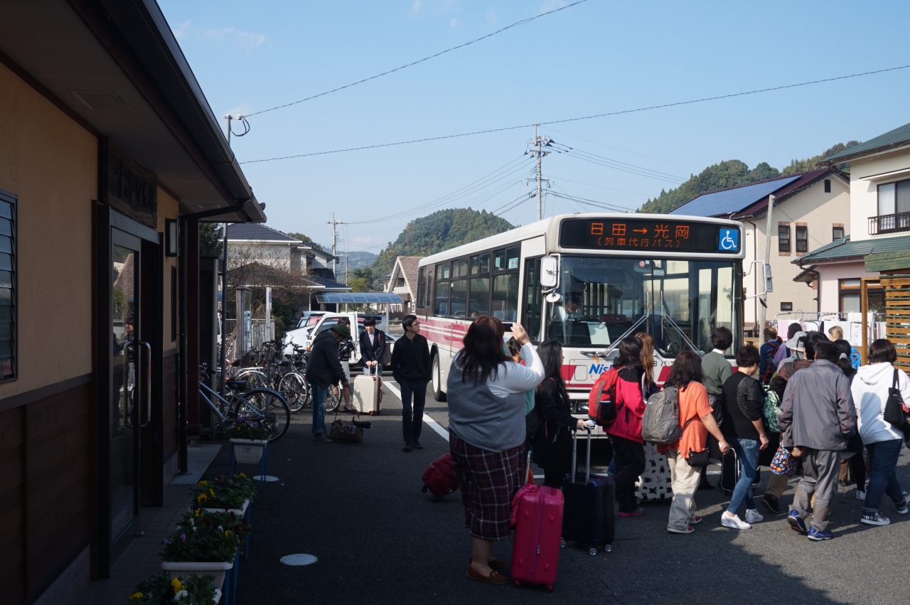 光岡~日田の1駅間のみバス代行中(2018年夏までの見込み)