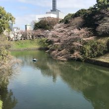 皇居のお堀ではボートを浮かべまだちょっと早い花見クルーズ?