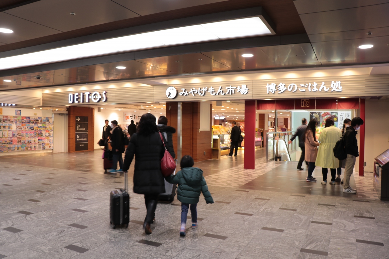 JR博多駅の新幹線改札口側にあります。中は菓子店や博多めん街道などの飲食店も入っているので、列車やバスの待ち合わせ時間で食事を取ることもできます。駅構内にあるので駅の利用ついでに~と気軽に利用できるのが良い点ではないでしょうか。