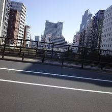 つきじ川に流れる橋のひとつでよく歴史の舞台となるひとつの橋ですが今では車で走るぶんにはこれが橋なのかとは分からないぐらいな感じだと思います 歩いていると公園が左右にあるので全体的に広めの橋ですが公園を整備されているので便利です