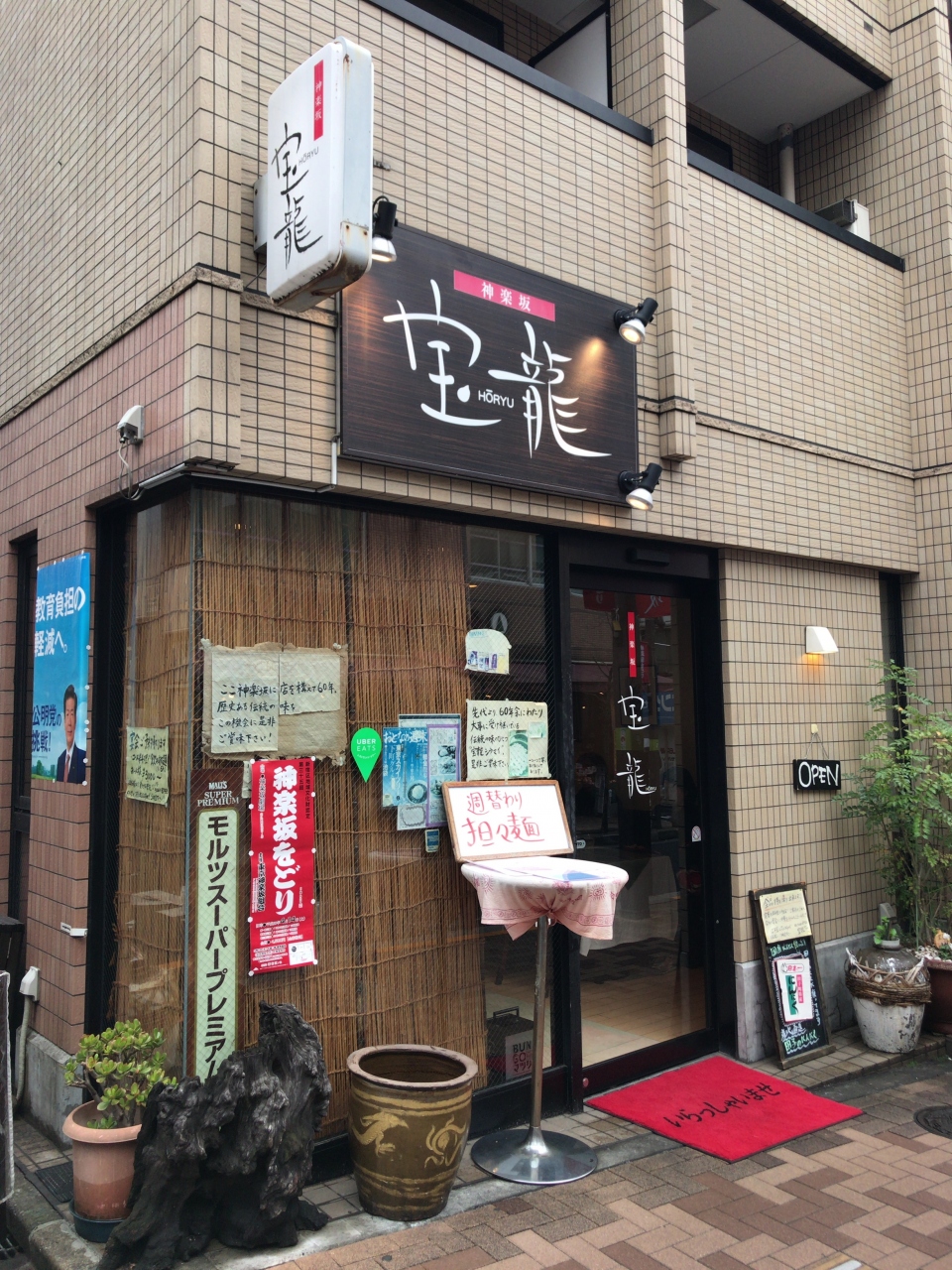 東西線神楽坂駅からちょっと坂下方向へ下った角にある中華料理屋の宝龍