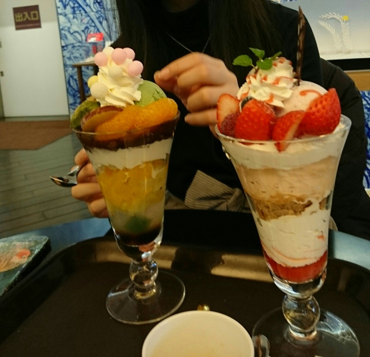 名物おいりが乗ったパフェはかわいらしく、また、いちごのパフェもオシャレで、美味しかったです。