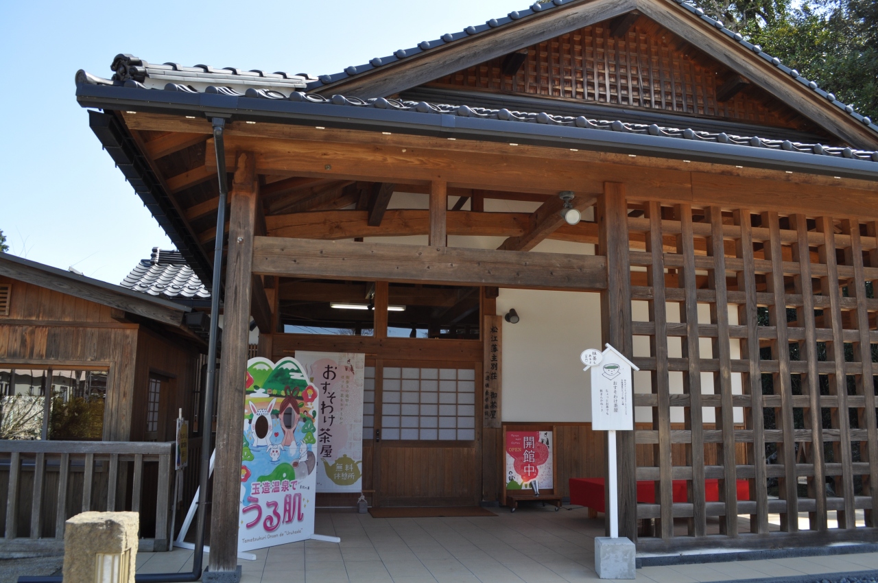 おすそわけ茶屋は玉造温泉の湯薬師堂の裏手にある茶屋さんです。広場のようになっており、その一角にありました。あまり大きな茶屋ではありませんが、抹茶を100円でいただけるなど、ちょっと立ち寄って休憩するのに便利なお茶屋さんです。