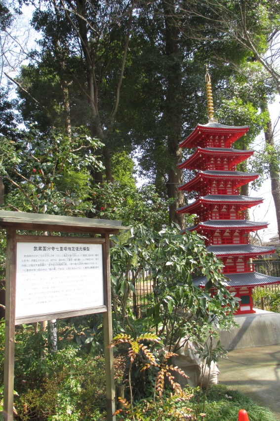 長屋門の入口を入ると、左手に「旧本多家住宅倉」が建っていますが、中が見られる訳ではありません。正面右手に2階建ての武蔵国分寺跡資料館(展示は1階のみ)があります。また、右手横には復元の七重の塔(但し、1/10)があります。そして、肝心の湧水は資料館の左で、そこから7~8m奥まった木の根元からわずかに湧き出ている様です。(ほとんど見えません)有料ですから、もう少し見やすくする様なことをして欲しいです。これではまるで武蔵国分寺跡資料館に入館するための料金所みたいです。