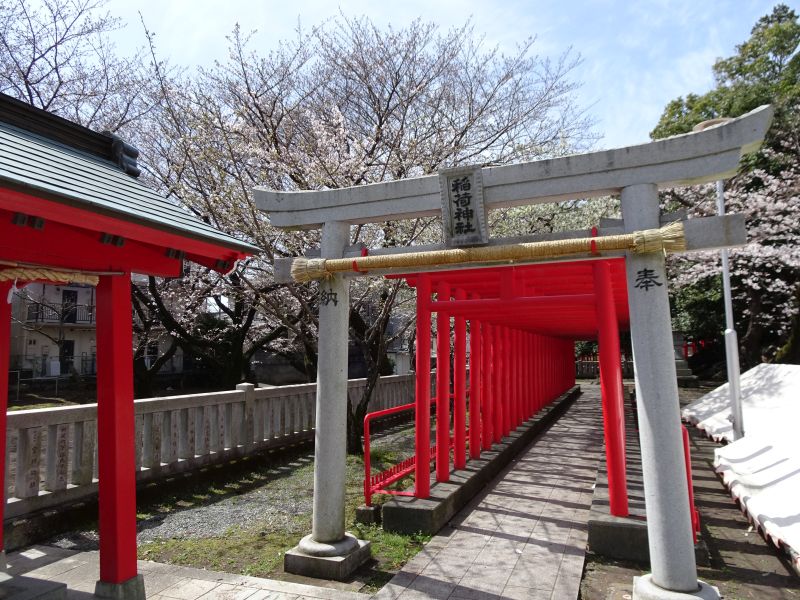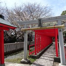 敷地は広く、6mほどの岩でできた塚があり、頂上に向かい多くの赤い鳥居が連なっていました。塚は溶岩が固まったものです。