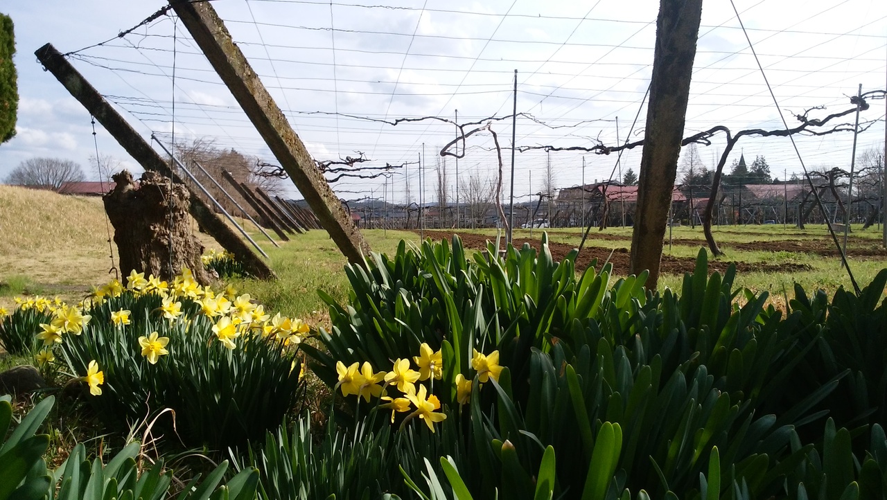 訪れた時が3月、葡萄畑は枝葉を伸ばす前でした。緑の葉に葡萄の実る姿を見ることはできませんでしたが、修道院の裏に回り、墓地まで足を運ぶと、春の気配を感じることができました。