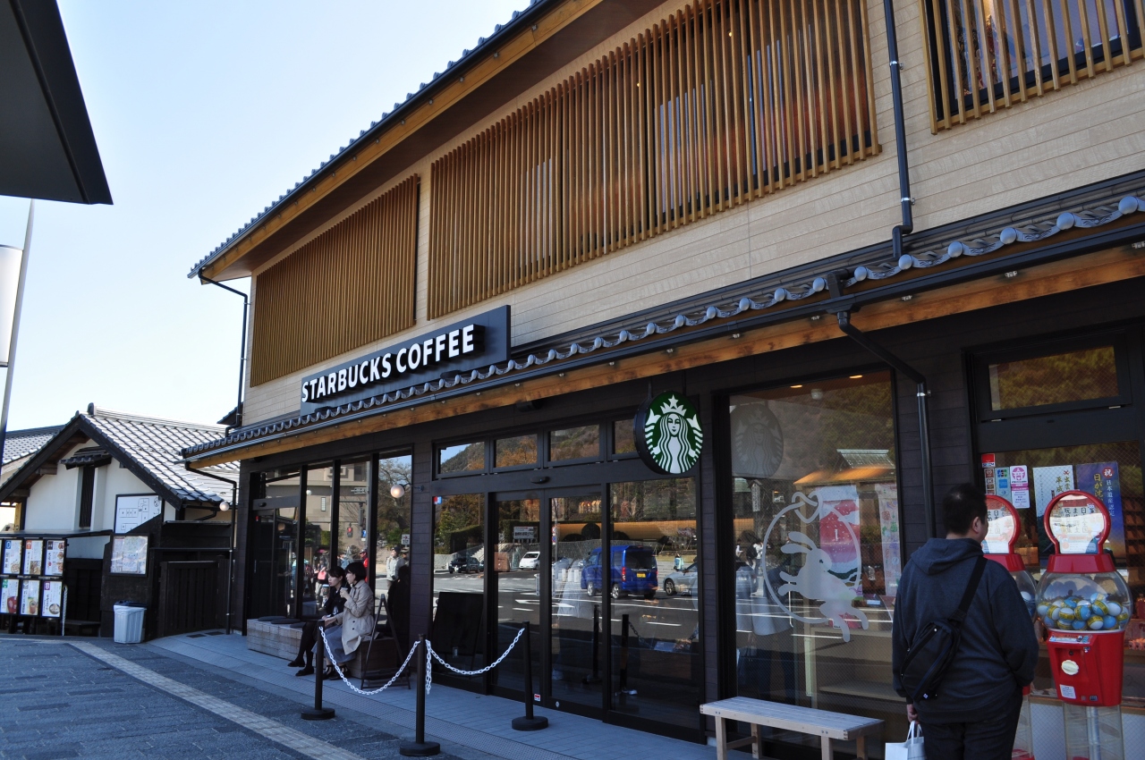 出雲大社のすぐ目の前の交差点そばにあるスターバックスです。あまり目立つ建物ではなく、出雲大社と調和した落ち着いた感じのする建物です。こうやってきちんと神社に合わせて落ち着いた造りの店舗にしてくれているというのはいいですね。メニューはどこにでもあるスターバックスのメニューと同じだったと思います。