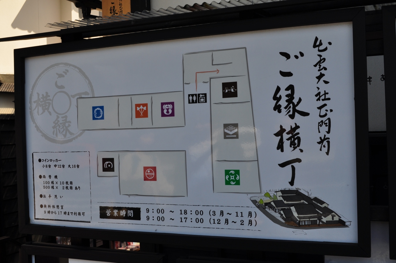 出雲大社のすぐ目の前の交差点の一角にあるお店が集まった施設になります。飲食店やお土産物屋さんが合わせて8店舗ほど狭い場所に集まっている感じでなかなか面白いです。休日ということもあり、結構な数の観光客が訪問していてすごい賑わっていました。出雲ぜんざいをいただけるお店などもあるので、参拝後の休憩場所としても良いと思います。