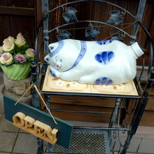 その町の真ん中に,赤井倉がある.明治23年建築の旧住宅を一部改修した建物は,平成15年,国の登録有形文化財に指定されている.赤井倉による.古い建物の中に陶器が陳列されている.商店というより,古い美術館のよう.ここでもお皿などを買った.トイレまで装飾されていてびっくり.フィンランドのお土産をわざわざ窯の倉庫まで取りに行ってくれた 親切な店でもある