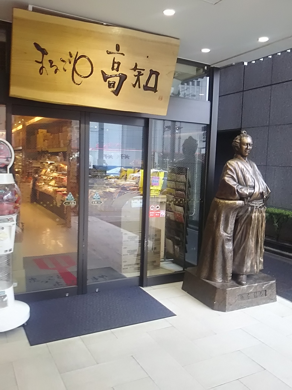 JR の有楽町の駅から銀座方面に向かい沖縄のわしたショップの隣にあるのがこちらの河内物産館です 入り口には坂本龍馬の像が建っているのですぐに分かると思います 店内には高知の案内のパンフレットや高知のお酒やつまみなどが多数に置いてあります