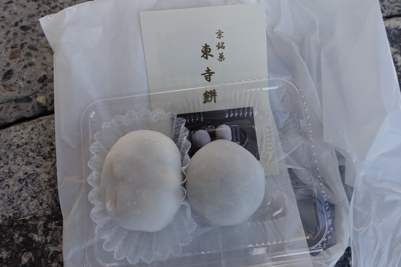 東寺を訪問した際に、お寺のすぐ近くにあった和菓子店で東寺餅を購入しました。