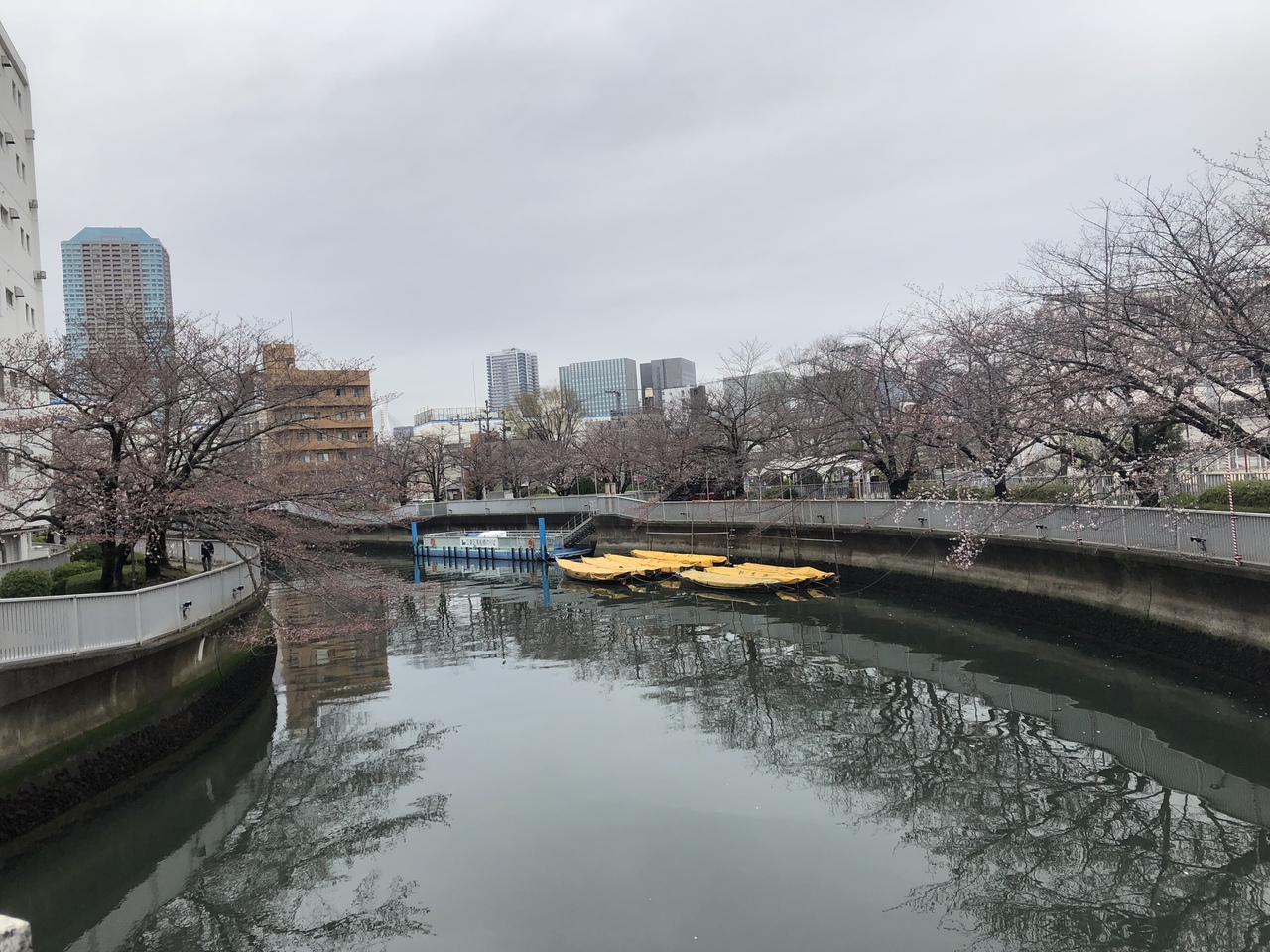 門前仲町交差点から徒歩すぐのところにある黒船橋。川巾は三十メートル程の小さな川というか運河である。川岸には桜並木が連なり花見シーズンには賑わう。橋の近くに小さな船付き場があり、船上から桜を眺めることも出来ます。
