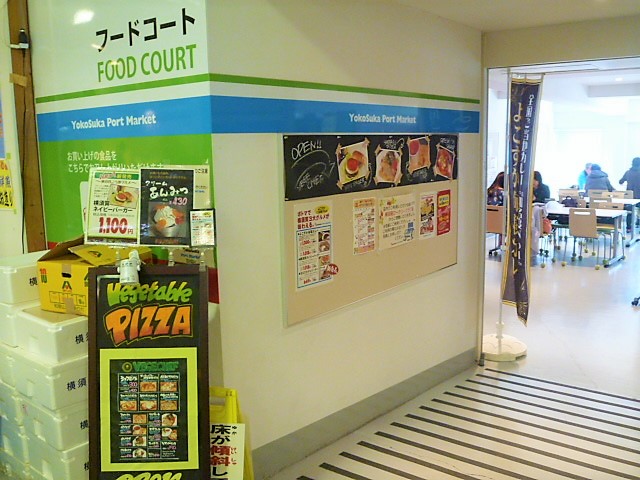 猿島と三笠公園(`三笠`にも乗船)に行って(9~14時頃)、先ずはランチ,次にお土産で[よこすかポートマーケット]立ち寄りました…(通り過ぎはありますが)始めてマーケットに。 早速、フードコートに寄りピザを!(後から`2階はレストラン`が,,) `旬産旬消`;一番目立ったが魚さんが数店で鮮魚を! 他にもパン/お菓子/野菜/果物/葉山牛//。 お土産コーナーもありました;3種類の海軍カレーを(^^)