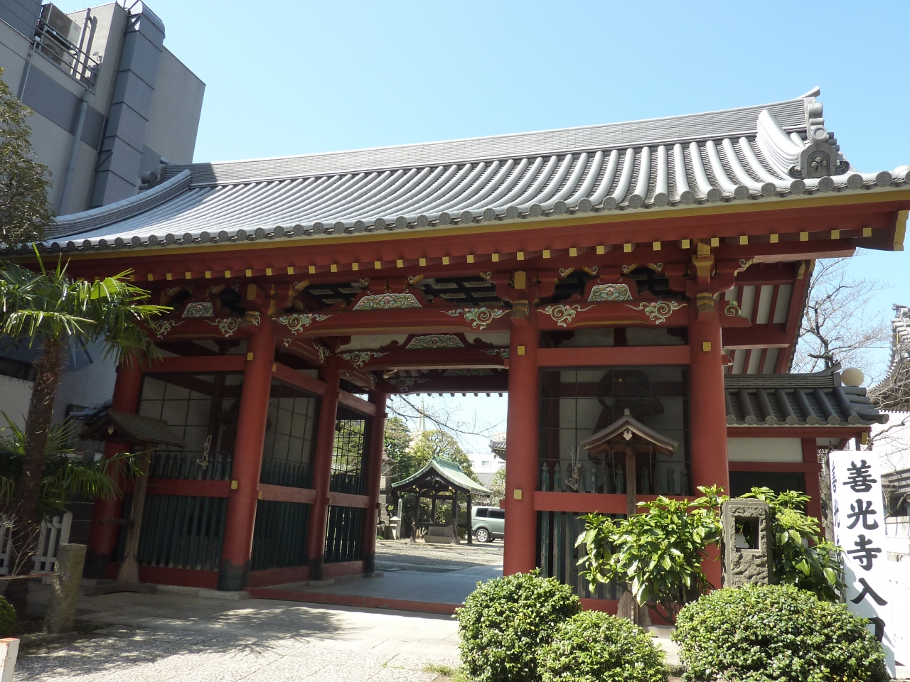 表参道駅からほど近く、青山通り(国道246号)沿いにあるお寺。長野の善光寺の流れを汲むお寺のようで、立派な山門が目をひきます。青山通りに出れば多くの人と車が行き交う賑やかさですが、境内は都会とは思えないような閑静なお寺でした。