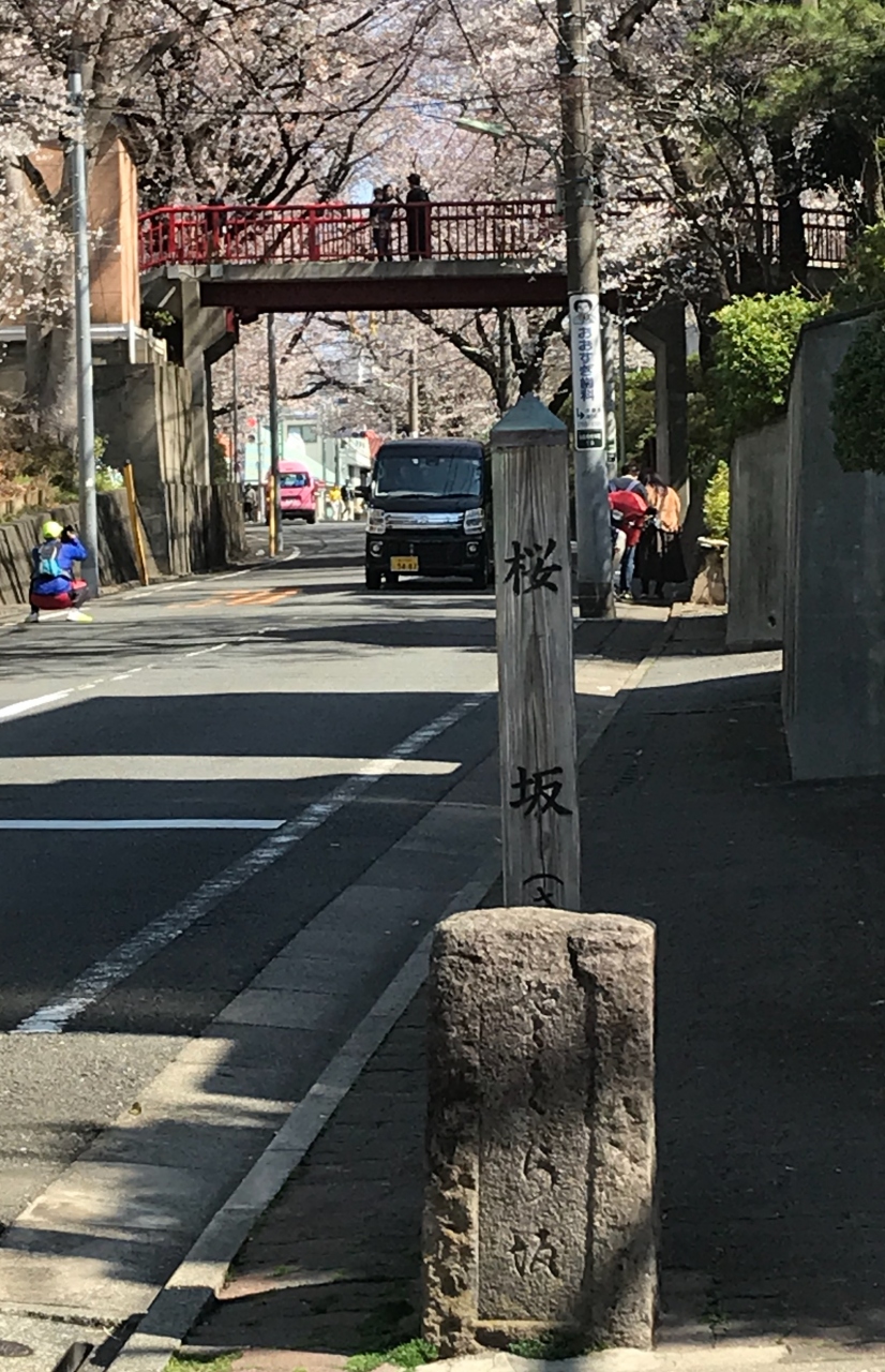 場所は片側一車線の石垣に挟まれた旧中原街道の切通しの坂道。坂の名前は、両側に大正時代に植えられた桜にちなむものだそうです。昭和になって中原街道が今のルートになり、その頃に「さくら坂」という石碑が建てられたようです。