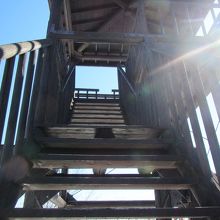 頂上ではテレビ局の電波塔、丸山神社の石碑(神社は元忠類線で少し南に行ったところに移転した)、そして25段の階段のある屋根付きの展望台があります。