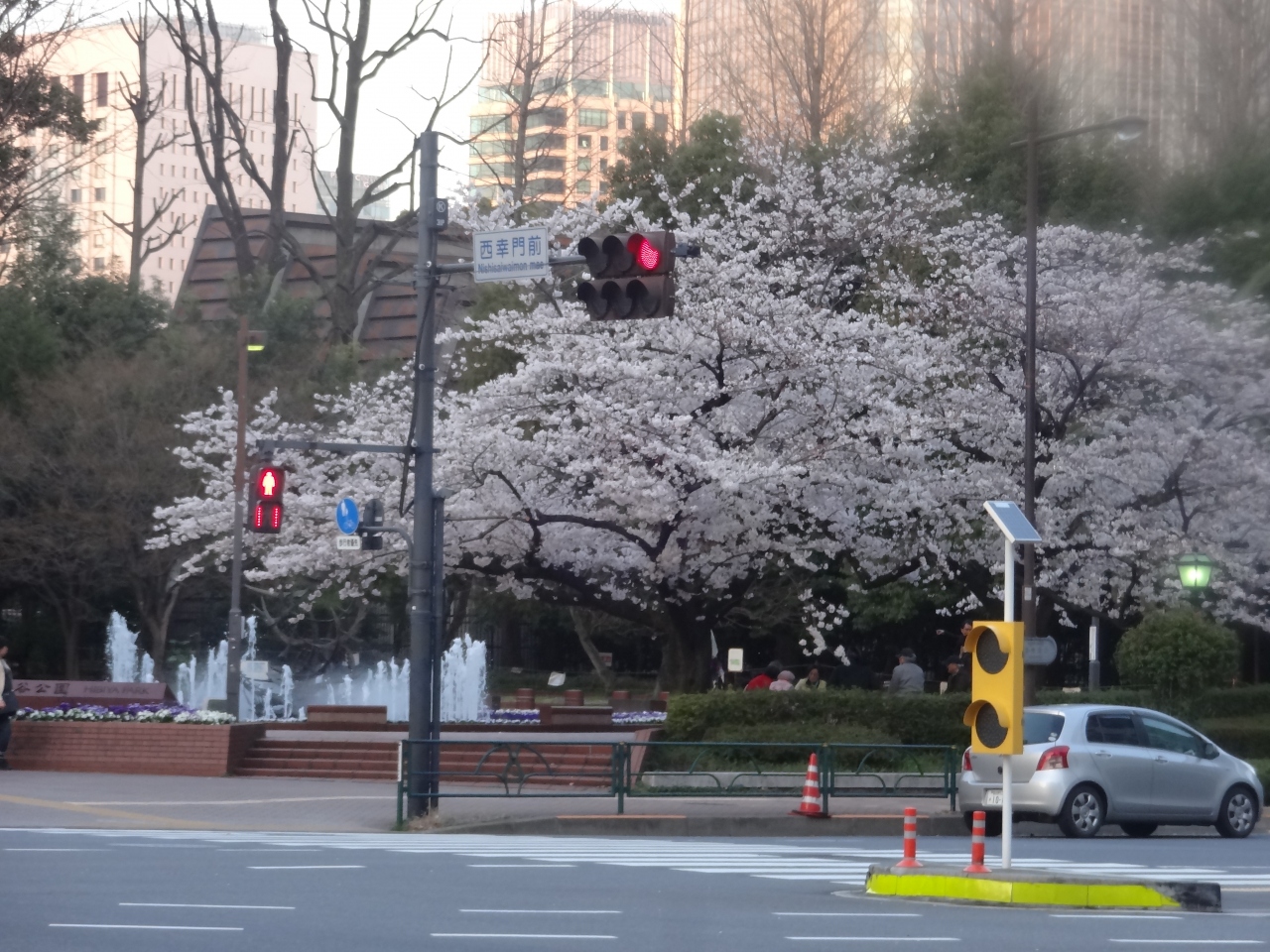 日比谷公園で桜のイメージはない方が多いかもしれませんが、噴水広場のあたりは桜が咲いていました。椅子もありますし、混雑も全然なかったので、下手に桜の名所(目黒川など)行くよりもずっと快適に桜を眺めることができます。