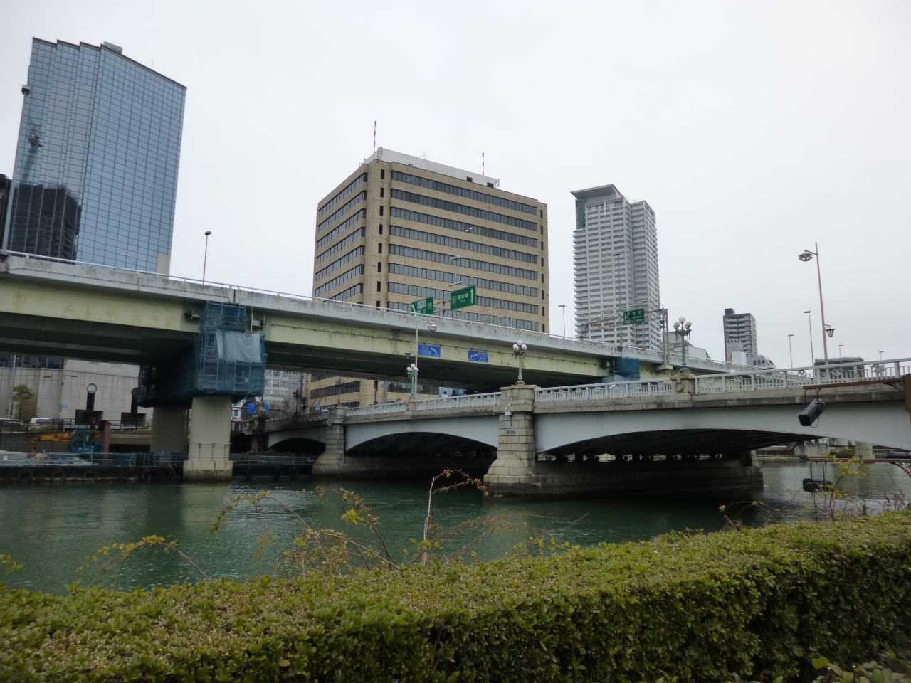 中之島に架かる橋の中でも有名な「なにわ橋」の光景はなかなか見事ですが、土佐堀川に比べると堂島川の光景は、阪神高速道路の高架橋の姿が入り込むため、やや目障りな印象を受けました。