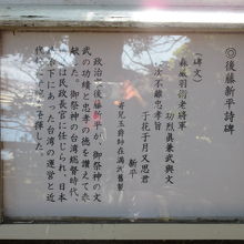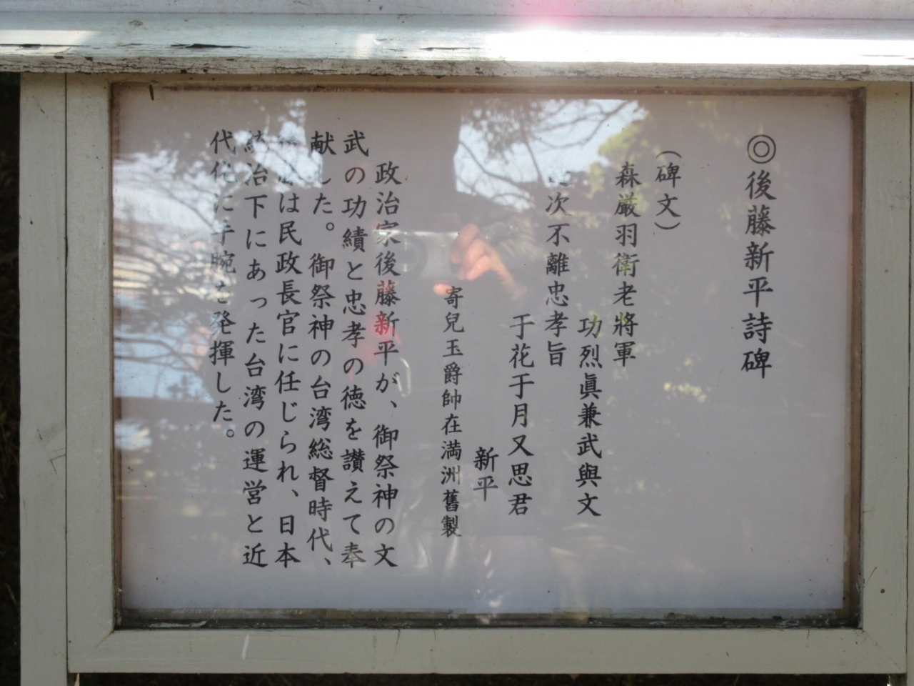 児玉神社の社殿の手前になります。(社殿は保存修復工事中でした)もともとは医者であった後藤新平氏は児玉源太郎氏に抜擢されて民政長官に就任したという。恥ずかしながら、今までは名前を聞いたこがある程度でした。