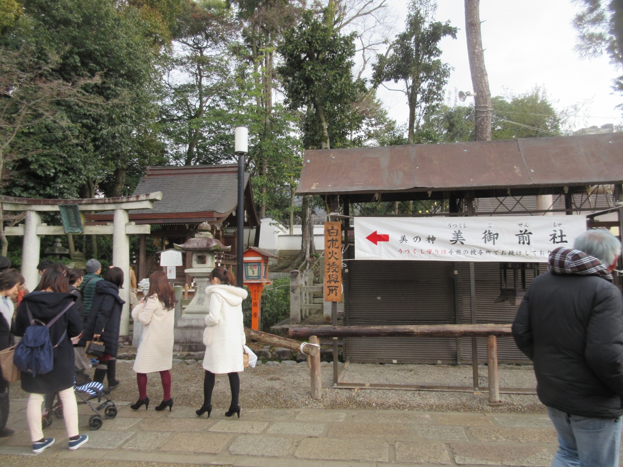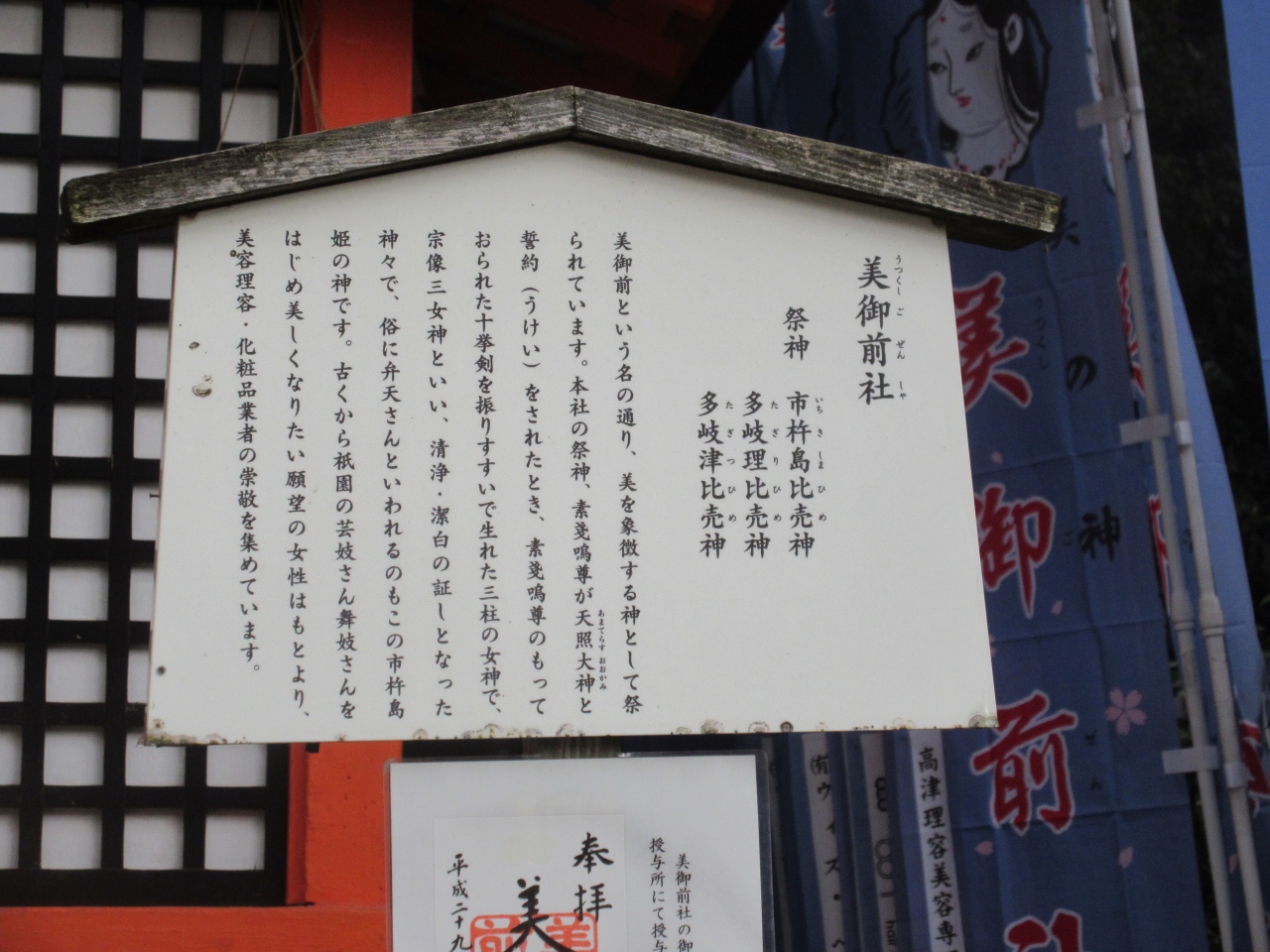 京都・八坂神社の境内摂社の一つが美御前神社です。八坂神社の御祭神であるすさのをみことが所持していた剣より生まれたと言われる宗方三女神と呼ばれる3人の女神が祀られております。若い女性が順番に参っていました、きっと美人に。