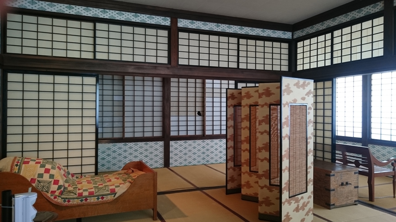 2階はテーブルやベッドなどがおいてあり、当時の部屋を再現しています