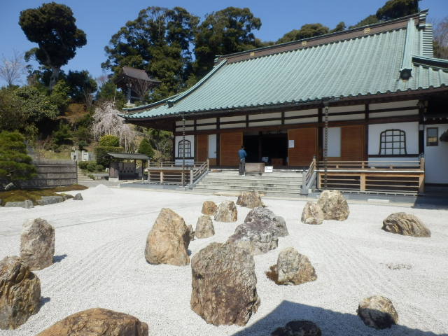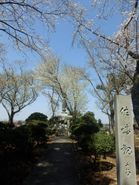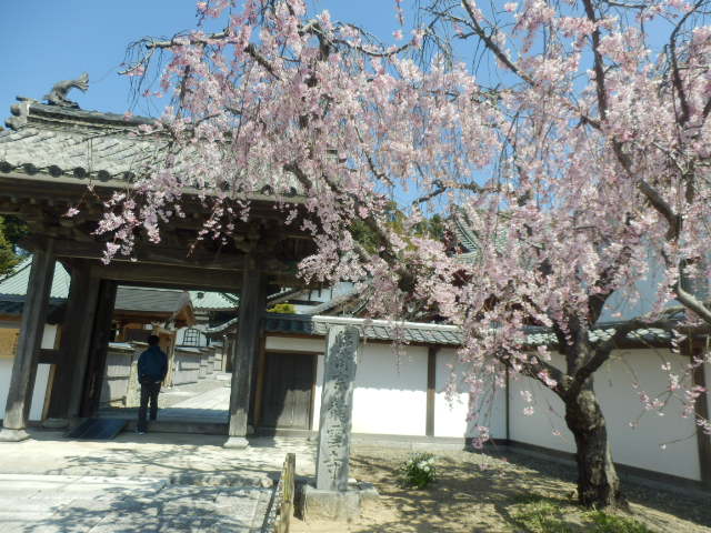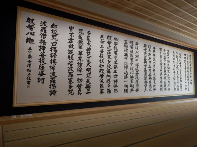 書家:金澤翔子さん奉納作品「世界一大きな般若心経(16m×4m)」背に手を合わせ、しだれ桜や庭園、散歩道から佐鳴湖、心癒され供養についてじっくり考える時間になりました。