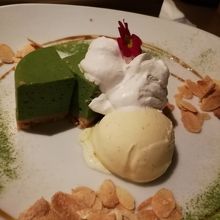 抹茶チーズケーキは生クリームとあんこ、バニラアイスが付いていて、チーズ感は薄かったですが、抹茶が濃厚で美味しかったです。