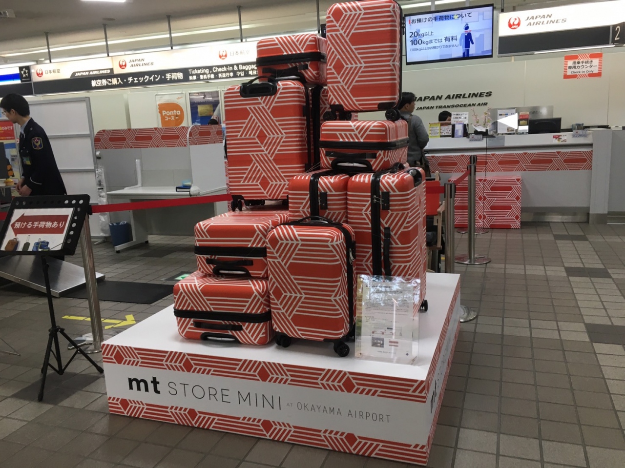 それほど大きな空港ではないので、降機してからはすぐに荷物を受け取れるのは便利です。空港から岡山市内や倉敷に行く鉄道アクセスがないので、公共交通機関はバスだけになります。今回は岡山を代表とする企業になったマスキングテープのカモ井さんと日本航空がコラボレーションした内装になっていました。