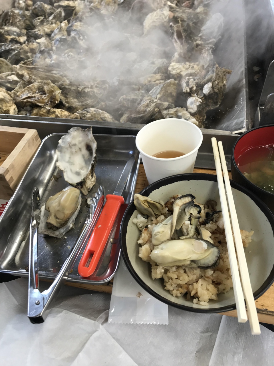牡蠣ご飯や牡蠣汁もセットにすると牡蠣づくしを楽しめます。焼き牡蠣だけだと 少し飽きるので 口直しにもいいでしょう。