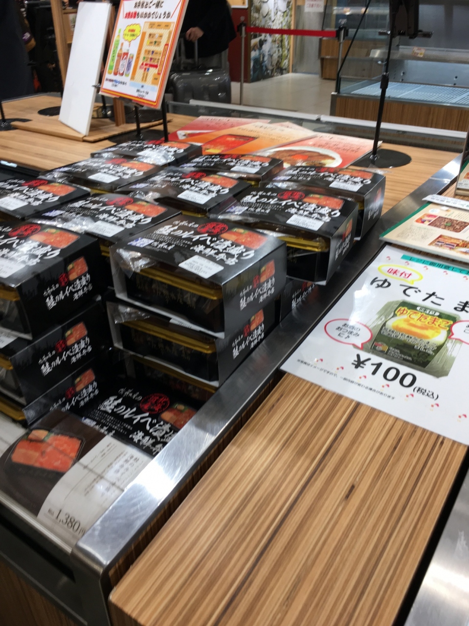 東京駅にある駅弁屋さんです。週末の夜だったためわりと混んでいました。時間的に商品が少ない時間で、もう売り切れの商品が多くちょっと選びにくかったです。鮭のルイベ漬け弁当にしました。天然鮭といくらが特製醤油にしっかりとつけられていて美味しかったです。