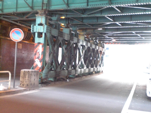 新橋付近の架道橋と比較すると、周囲の建物との対比で、明らかな差異を感じます。
