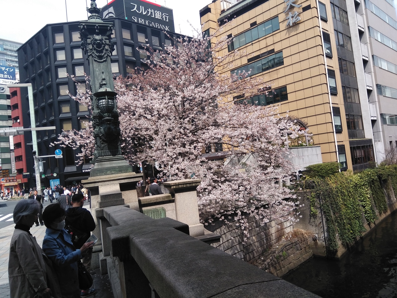 日本橋駅からコレド日本橋を通り過ぎ日本橋を渡りました。3月下旬のこの時期は桜が綺麗です。平日の12時過ぎランチ兼ねてお散歩しました。OLさんやサラリーマン他観光客で賑わっていました。今まで気づきませんでしたが日本橋を渡る手前に船の発着所がありクルージング船が出ていました。川は濁っていて綺麗ではありませんが桜が咲いている今時期は船に乗って春の風に吹かれて船から花見を良いかなと思います。