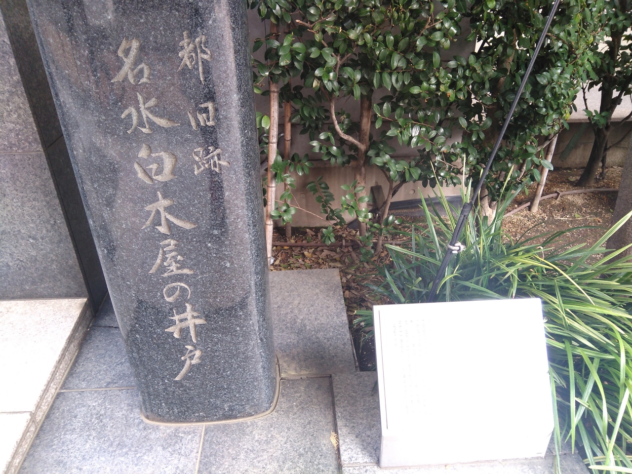 コレド日本橋の裏側のビルに名水白木屋の井戸があります。井戸があるというより、石碑が建っているて、説明文があります。