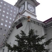 ビルの谷間にひっそりと建つ時計台です。