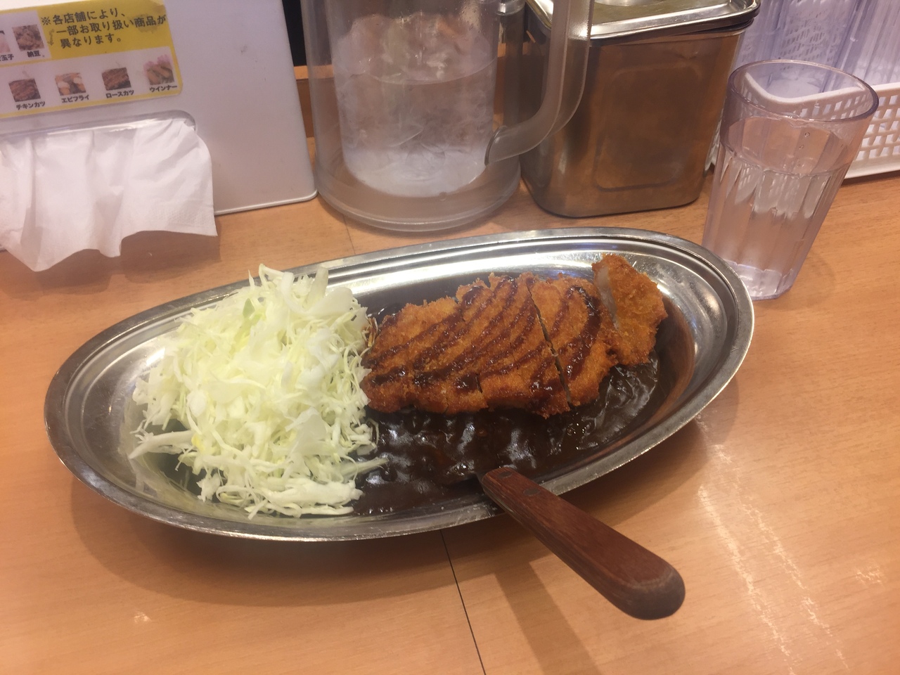 食べたのはロースカツカレーエコノミー680円!キャベツはおかわり自由なのでおかわりして、、、安くて早くていいですよ!