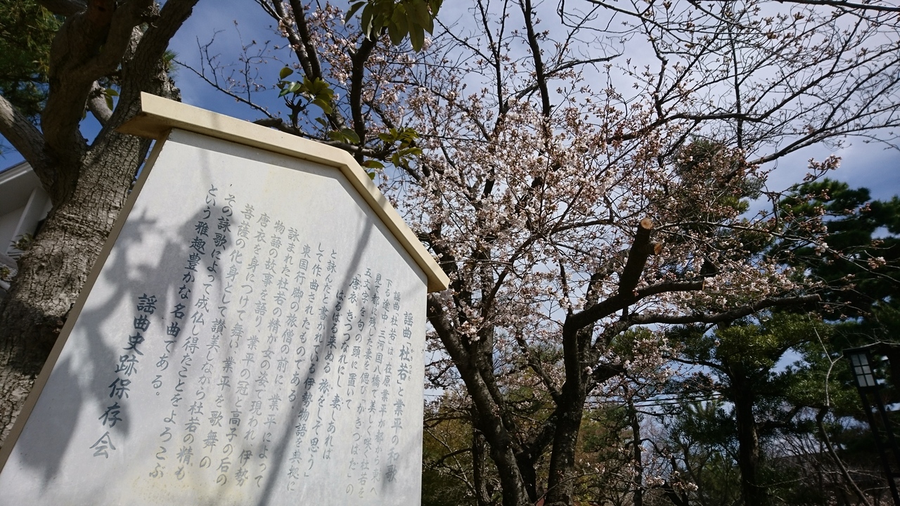 境内には映画『ちはやふる』の百人一首の歌人、在原業平が立ち寄り歌を歌ったところでも有名ですのでそのエピソード的なものものあり、立て看板があちらこちらにあります。