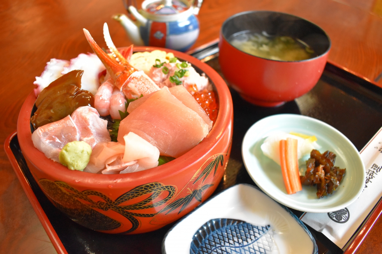 海鮮丼はてんこ盛りでお腹いっぱい。