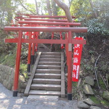 赤い鳥居が連なっていて狛狐様も鎮座してます